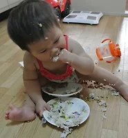 며칠동안 아스카와 열심히 연습을 하더니 통의 작은 구멍에 젓가락을 집어 넣는 고도의 기술을 성공!!