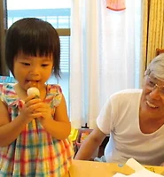 今日はママの誕生日ですけど、主役の位置で「ふーっ」