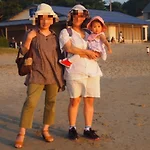 気持のよい夕方。 みんなで海へ夕陽を見に行きました。 蚊がいないので、安心してのはらを遊ばせられます。 広い砂浜で、のはら走る走る! 首をかしげるくせがつきました。 ピンクも似合うね。 「ほらほら、足が濡れてるよ」 この砂浜、福岡で穴場の夕陽スポットでしたが、最近は有名になってきました。 後ろのほうに昔、夫とデートしたレストランがあります。 ばーばのバックを引きずり回した揚句、興味が他に移るとぽいっ! でも笑顔が可愛いので許されてます。 まだ1歳だから。 これが夕陽。 私は海が好きですが、夫は海はちょっと怖いと、山派です。 のはらはきっと、海も山もどちらも好きになるでしょう。