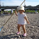 오늘은 반드시 물고기를 잡겠다!! 라고 결심한 듯.. 비장한 눈빛으로 가모가와를 방문한 노하라 짱! 「今日は必ず魚を捕まえるぞ!」 決心のポーズで、カメラに決意を語ります。 우선 돌밑을 뒤져보고!! 石の蔭に、魚がいるかも! 눈앞에 있는 물고기를 놓치고 싶지 않은 노하라짱! 目の前の魚には目もくれずに、幻の大魚を追いかけるのはら。 수심이 깊은 곳까지 탐험!! おお、結構深いところまで行ってますね。 まだ水の怖さを知らない赤ちゃんだからできる、この行動。 돌다리 사이의 틈도 탐색!! この写真、アップで見るとかなり笑えます。 目が・・・へん。 결국 물고기 잡는 것은 실패!! 한차례 휴식 후 옷을 갈아입고 다시 물놀이 중인 노하라짱!! 結局、魚とりは今日も失敗~。 一度着替えて休憩したのち、再び川に入って遊んでいます。 돌위에 앉아서 물장난을 치고 ..