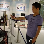 누군지 몰라도 해바라기 모양으로 물체를 추적하는 로봇을 디자인 한것은 훌륭한 생각인 것 같습니다^^. 실제로 로봇을 제작하게 되면 엔지니어의 입장에서만 바라보면서 로봇의 이름이나, 디자인에 대해서 소흘해 지는 경향이 있는데, 아래 사진의 로봇은 해바라기 모양으로 제작되어 있어서 처음 로봇을 봐도 대충 어떤 것을 수행하겠구나 예상할 수 있기 때문에 좋은 아이디어 같습니다. 직접 시연도 가능하고 물체가 추적되는 과정을 시뮬레이션으로 보여주고 있어서 재미있었습니다. 저랑 같이 로봇스퀘어를 방문했던 형님께서 시연하는 모습입니다^^. 가끔 동작 판단을 제대로 못해서 엉뚱한 곳으로 따라가기도 하는데, 그래도 디자인 만큼은 꽤 높은 점수를 주고싶은 로봇이었습니다.