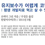 : 평생 개발자로 먹고 살 수 있다 ㅋㅋㅋ 라는 부제를 가지고 있네요. 로에디 그린 지음 / 우정은 옮김 한빛미디어 (주) / 2011년 8월 한빛미디어에서 제공하는 무료 E-book 입니다. 여러가지 형태로 아래의 주소에서 다운 받으실 수 있습니다. http://www.hanb.co.kr/events/eventview.html?event_id=freebook 개발자는 아니지만 이제껏 다른 사람들이 프로그램을 되도록 쉽게 이해할 수 있도록 코딩하는 방법만 배우다가 이책을 읽어보니 나름대로 일리가 있는 것 같습니다ㅋㅋㅋ. 문제는 과연 저렇게 코드를 작성하면 코드 해석 문서를 따로 만들지 않을 경우 자신도 유지보수 하기 어려워 질 수 있을 것 같습니다. 한빛 미디어에서 재미있는 책을 무료로 제공해 주셨네요...