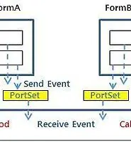 C#에서 UI는 거의 WinForms 형태로 구현되기 때문에 CCR에서는 특별히 WinFormsServicePort 라는 포트 객체를 지원하며, 이 포트 객체는 RunForm이라는 형태의 Form을 입력 값으로 받아 들입니다. 첫번째 예제는 WinFormsServicePort 객체와 RunForm 객체를 생성시킨 후에, 생성된 RunForm 객체를 WinFormsServicePort 에 등록시키는 것 입니다.