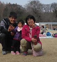 사자와 호랑이를 보고, 잠시 쉬는동안 외할아버지가 보내준 센베를 먹으면서
